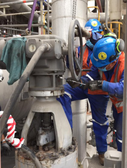 Para las válvulas manuales ya sea flangeadas o soldadas a la línea, se desarma para la inspección, evaluación y limpieza de sus componentes..